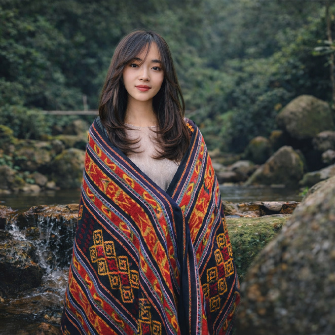 Dibuat dari 100% benang katun ondol, kain ini terasa adem namun kokoh, dengan tampilan etnik yang sangat menonjol. Cocok digunakan sebagai blanket, dekor ruangan, alas duduk outdoor, atau properti wajib untuk foto bertema etnik, folk, adventure, dan budaya lokal.